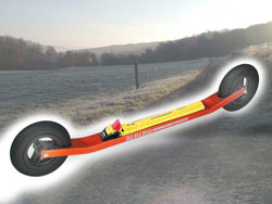 ist ein Skating-Rollski mit dem sie ganz kompfortabel auf fest geschotterten Feld/ Wald/ Parkwegen und Asphaltstrassen laufen können. Für Breitensportlangläufer ohne weiteres zu empfehlen. Gutes Gleichgewichtsgefühl und stabile Skatingschuhe sind Voraussetzung ! |